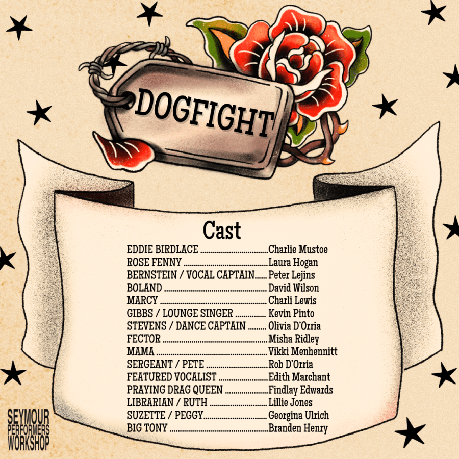Congratulations to everyone involved in our production of Dogfight. Thank you to our brilliant cast and hardworking production team, our fabulous band, and our wonderful backstage and front of house crews.